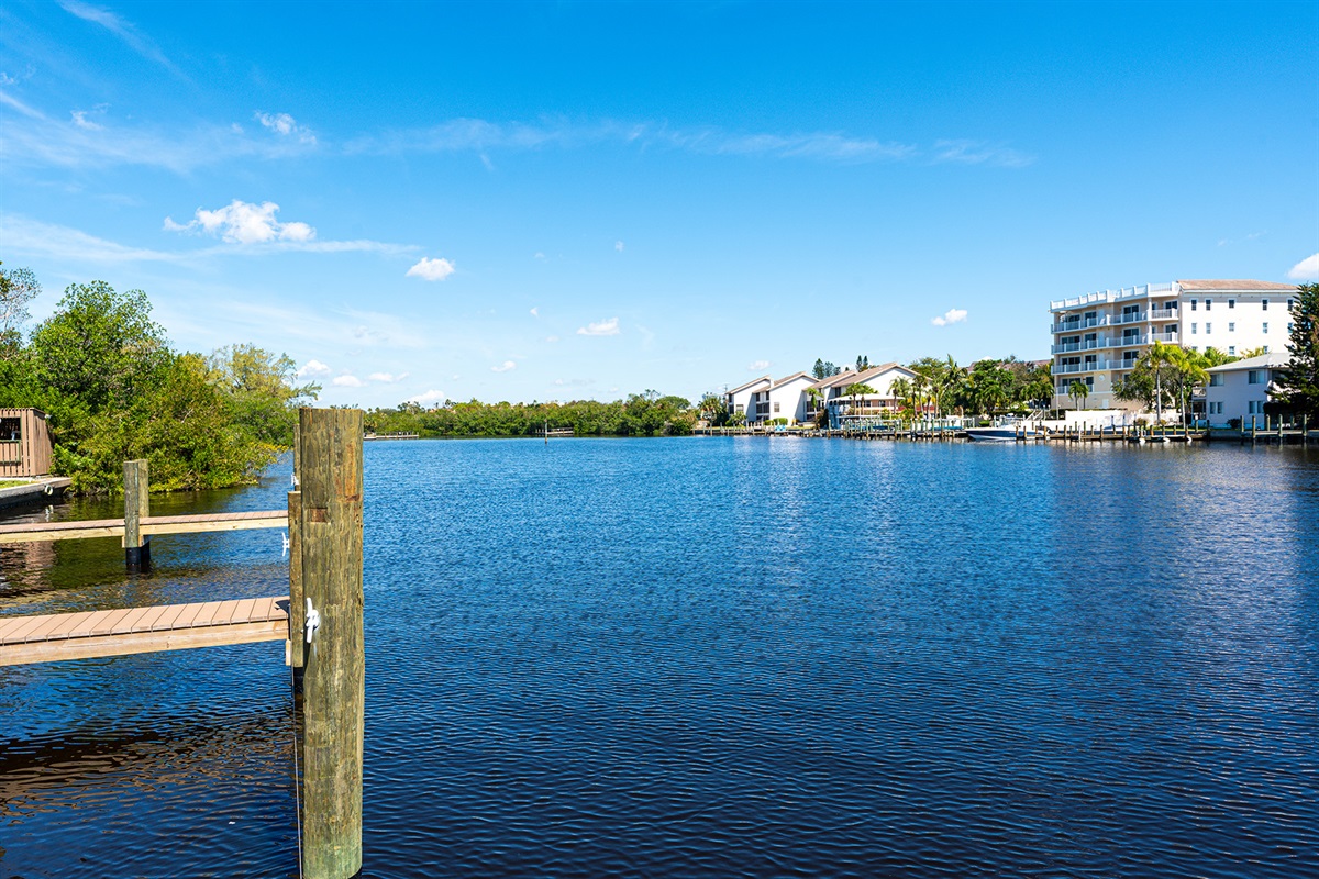 As you can see from the aerial photo, Fisherman's Cove is built on a very narrow strip of sand and sits directly on the beach. The Gulf of Mexico is approximately 100 feet from our lanai and master bedroom window, and the bay inlet is a similar distance from our east balcony and guest bedroom window.